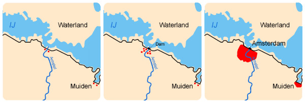 Amstel + dam > Amstelredam > Amsterdam