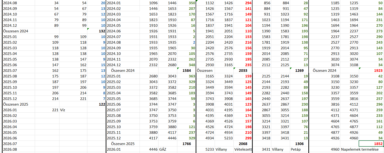 felírom a gáz, víz, áram állásokat. Mennek az adatok egy Excel